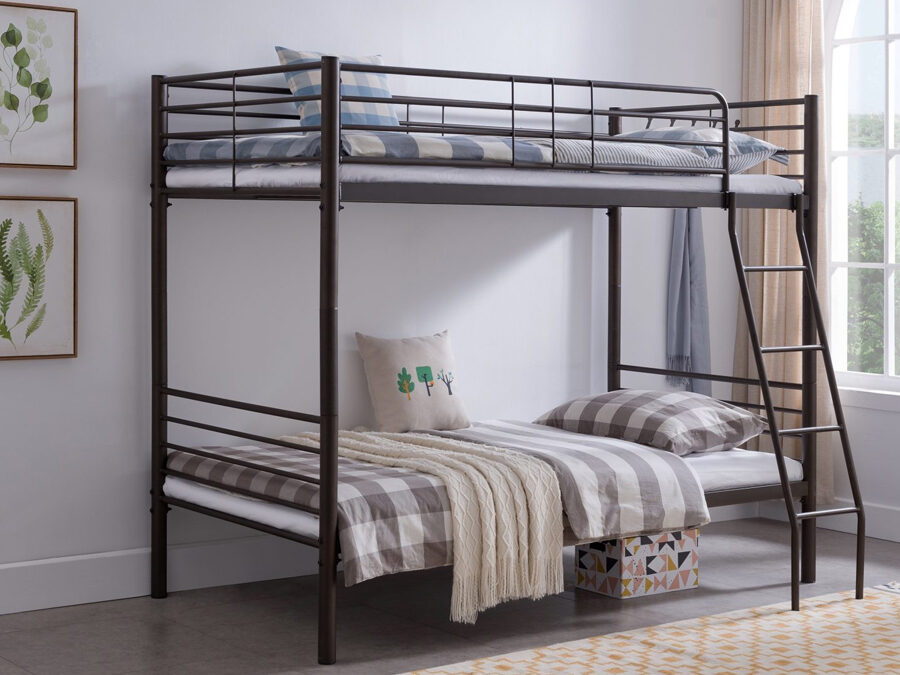 This Metal Bunk Bed, designed for long life and safety, includes a metal slat platform for strong support. The integrated ladder & full-length guardrails on upper bunk offer additional protection and accessibility, while the frame easily converts into two twin size beds.
