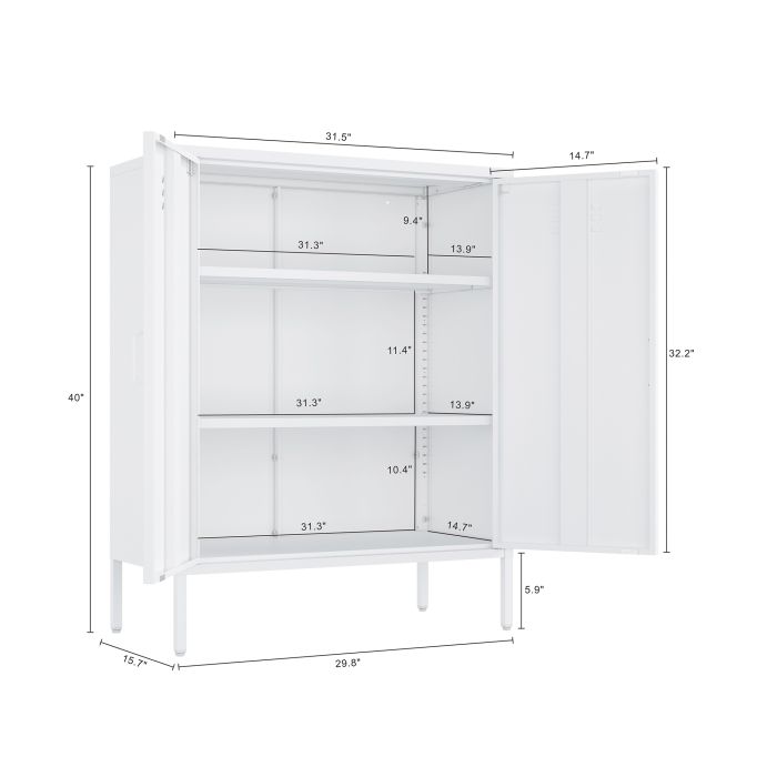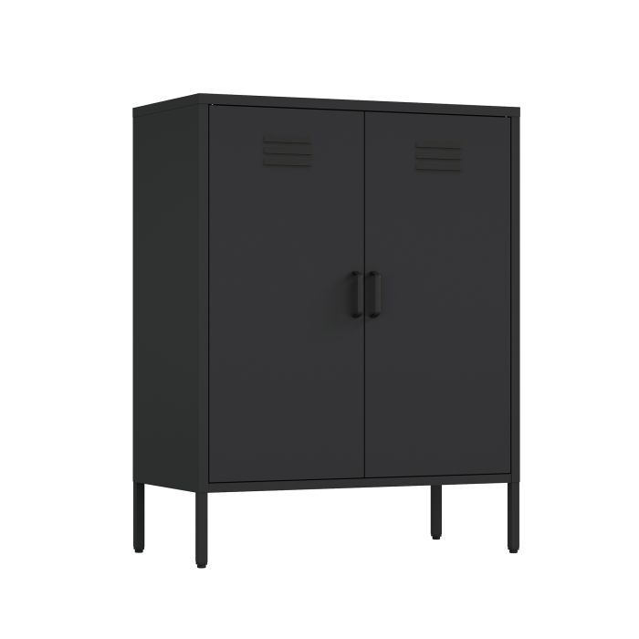 Features 2 Standard Metal Doors with Vents and Vertical Metal Handles.