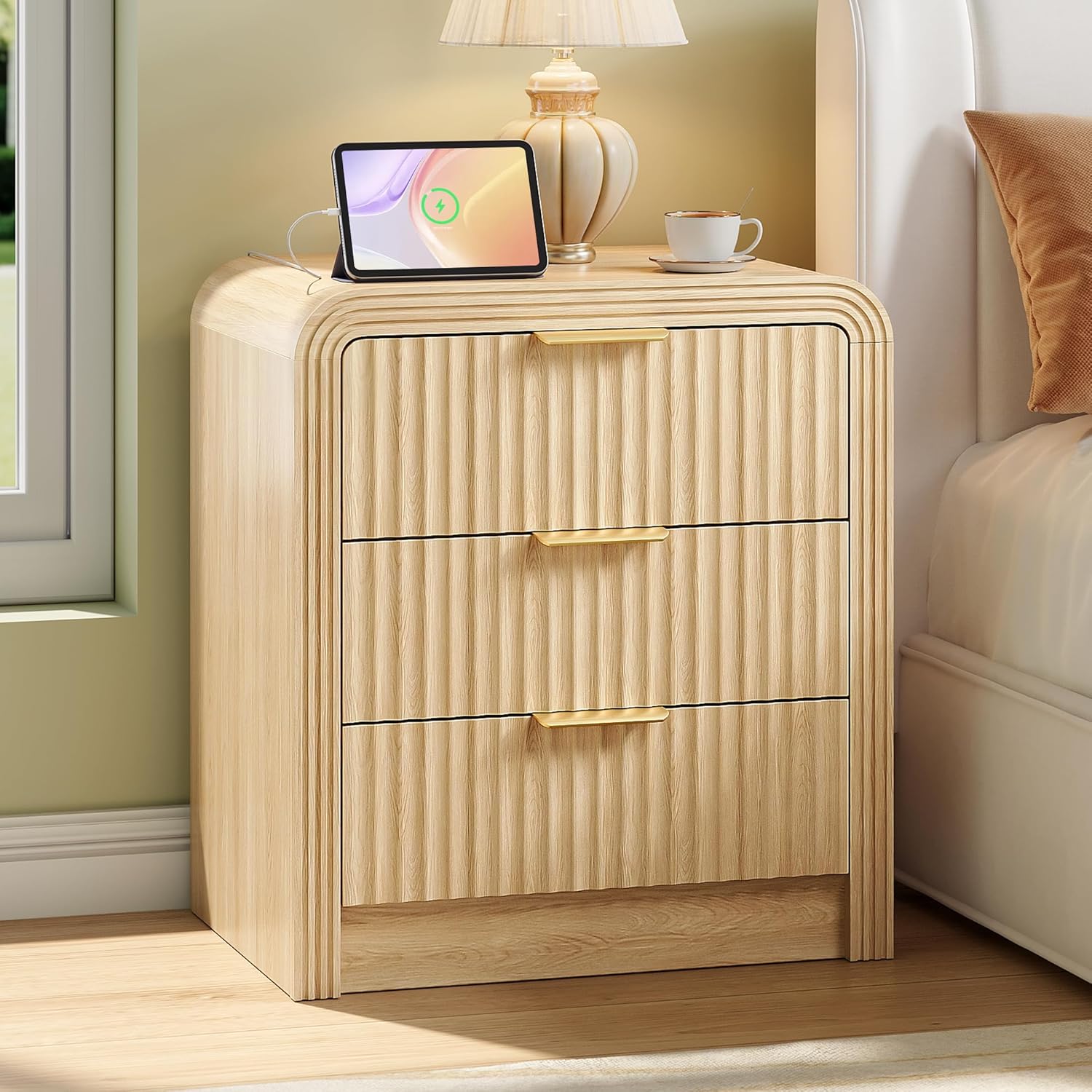 Designed with fluted drawer fronts and smooth rounded edges, this wooden nightstand adds modern elegance and a secure, family-friendly touch. Perfect for bedrooms or living rooms.