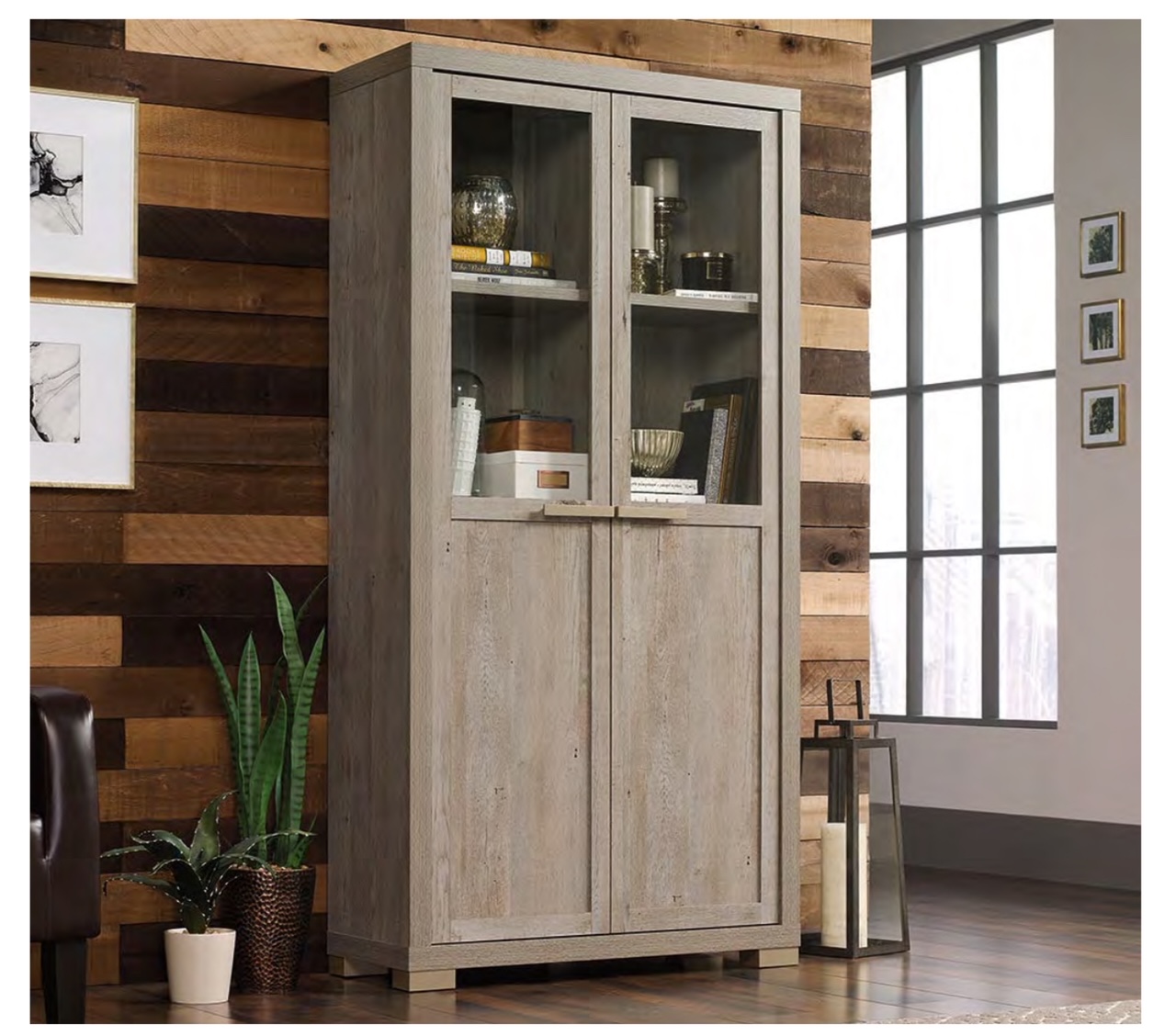 Six Shelves including four adjustable for flexible storage options. Two doors with safety-tempered glass insert.