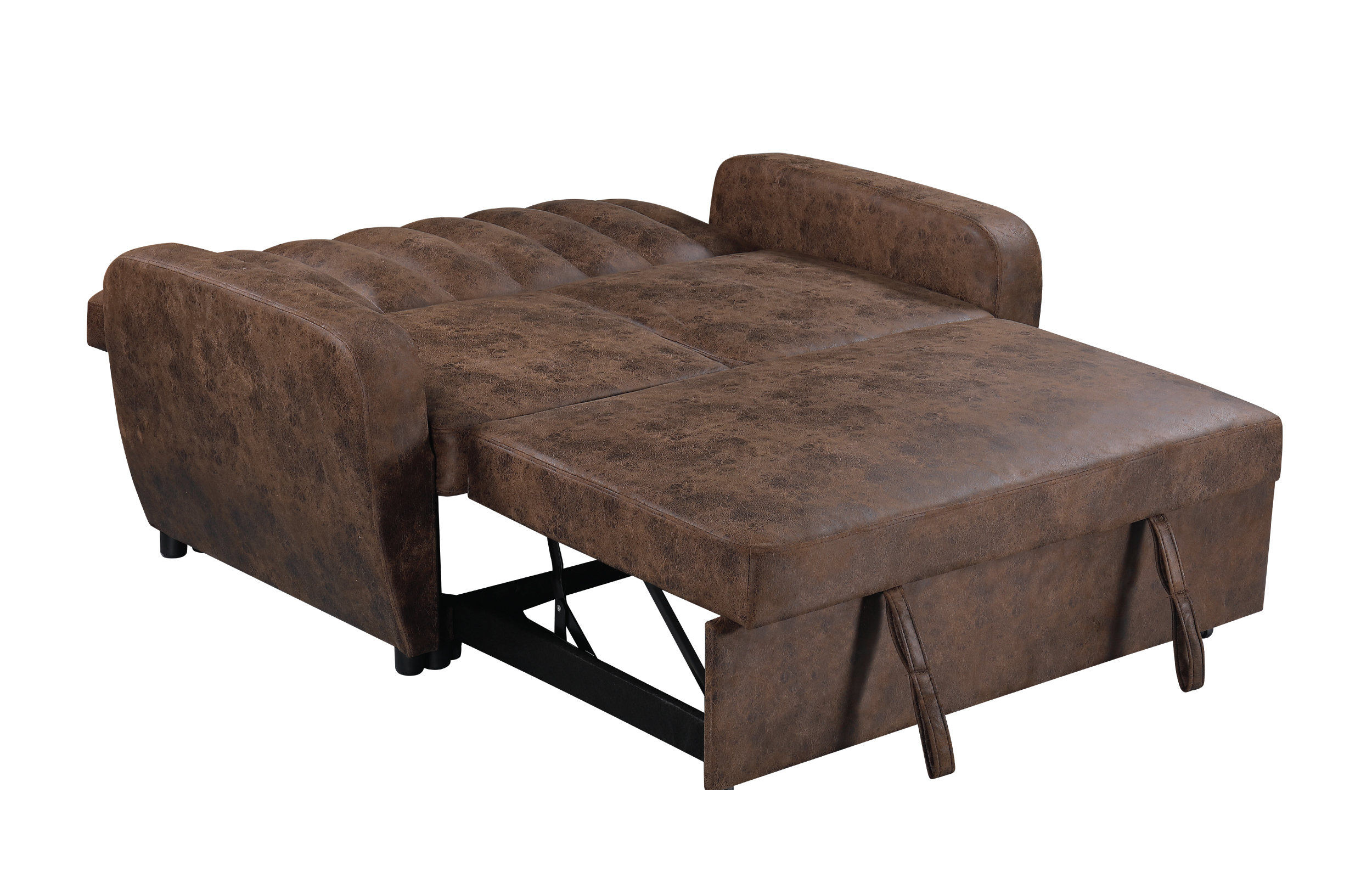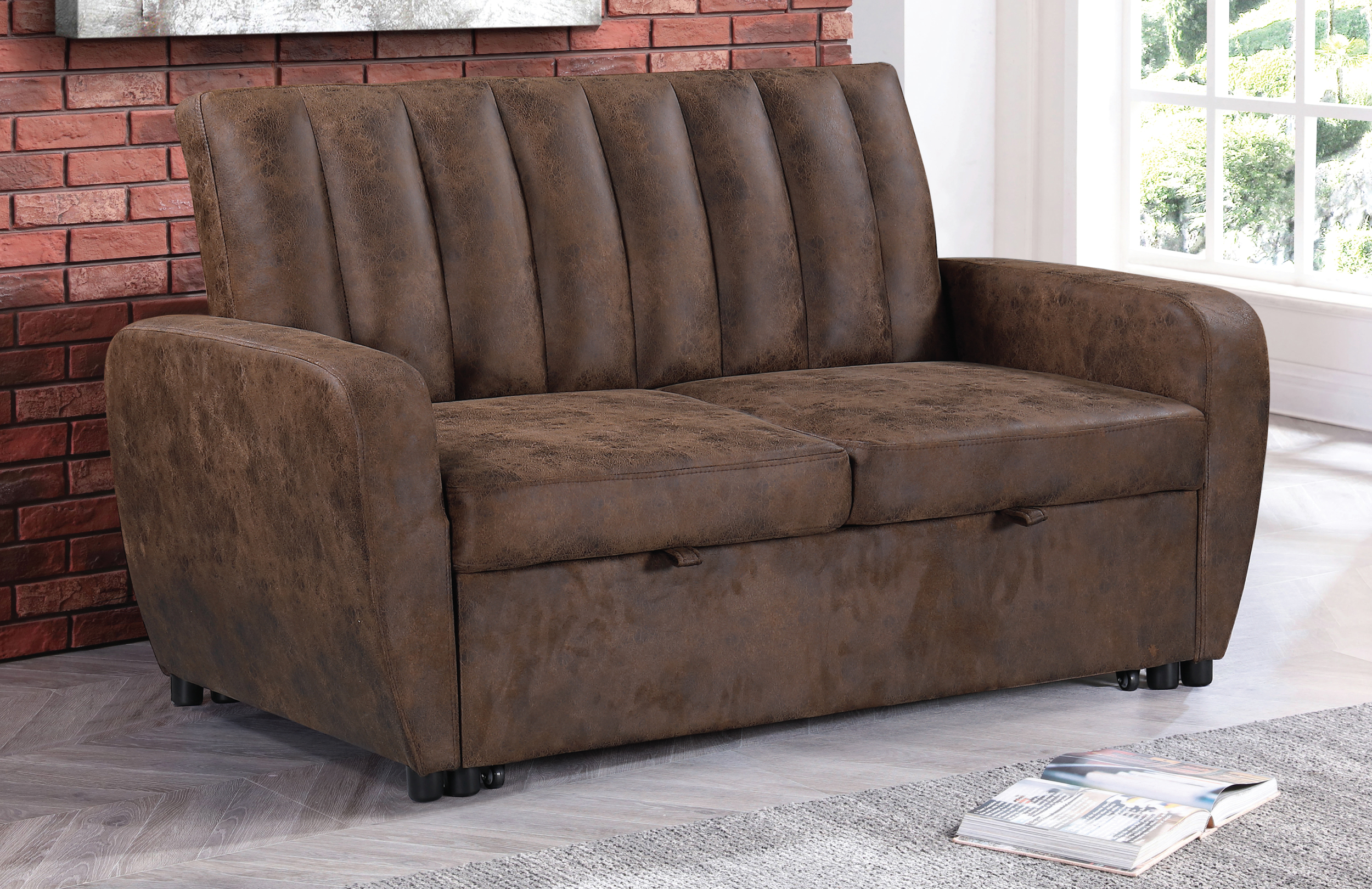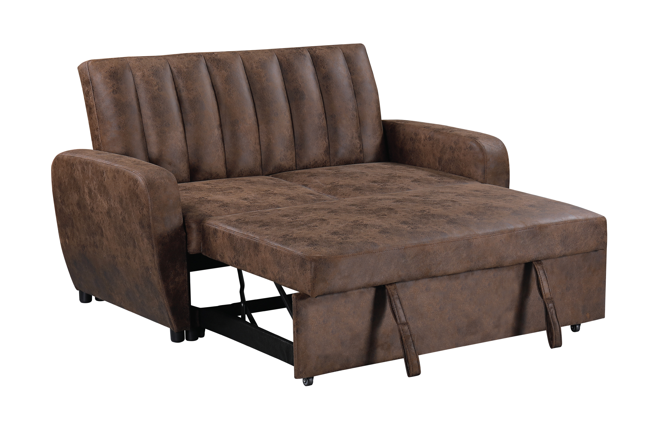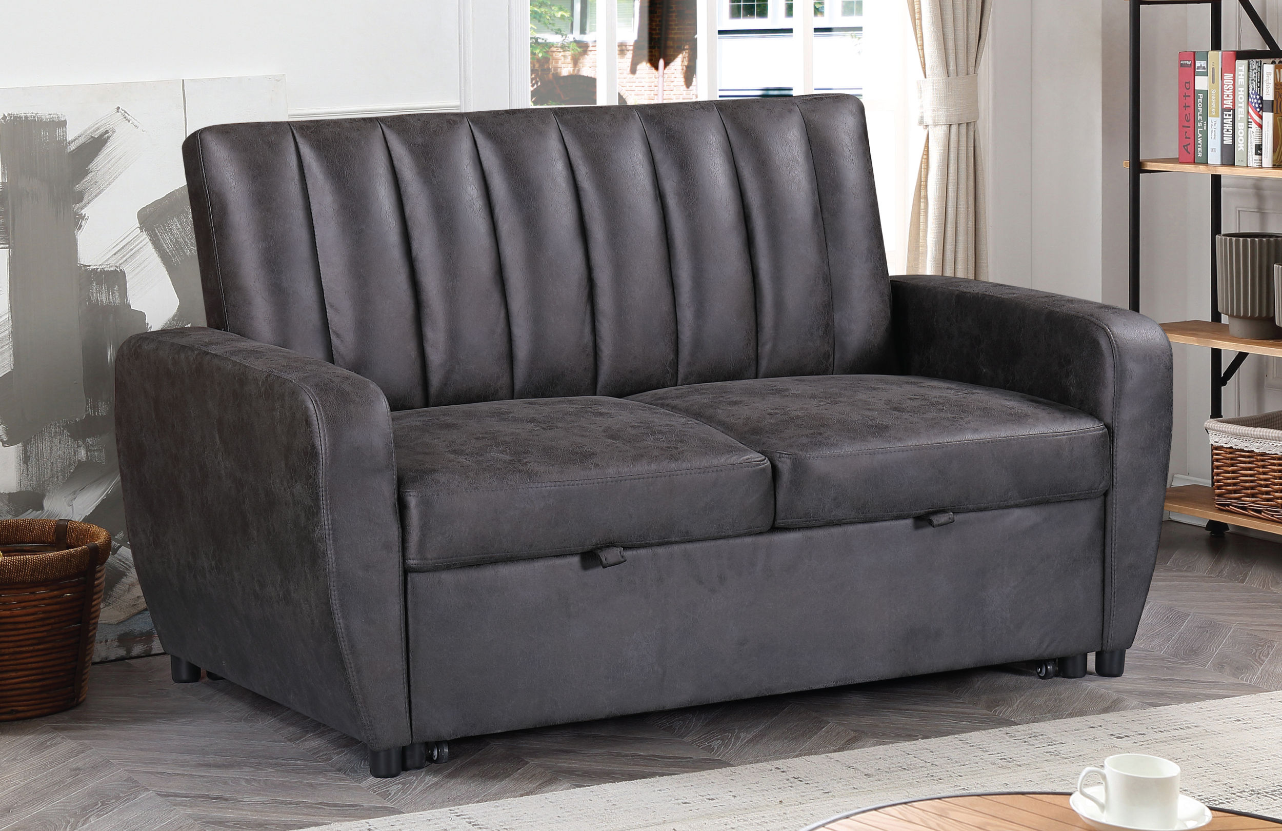 Great solution for tight spaces. This loveseat features a pull-out bed and is complete with grey or brown high-performance fabric.