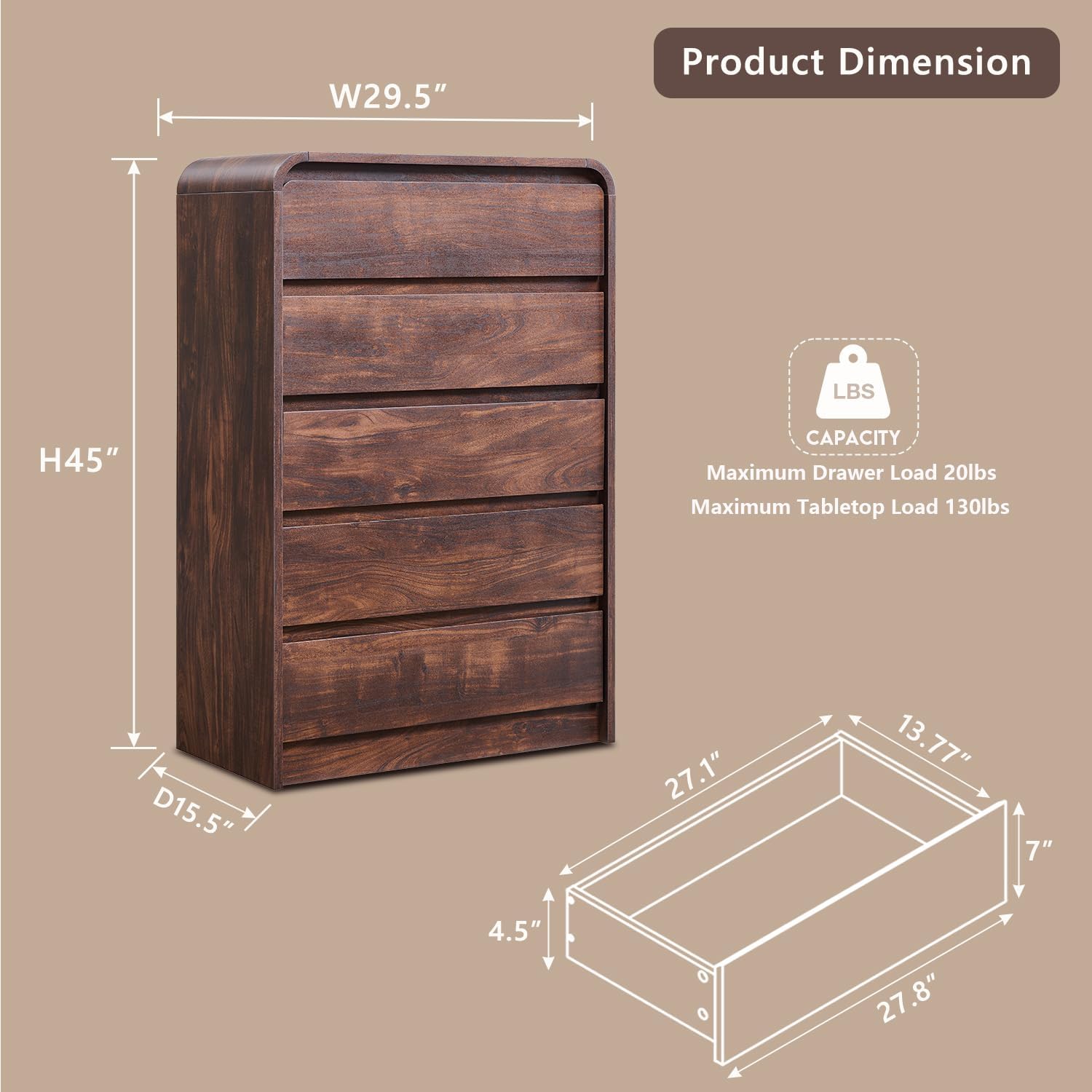 It features five sleek, handle-less drawers, each measuring 27.1″W × 13.77″D × 4.52″H, providing ample storage for your essentials while keeping them easily accessible.