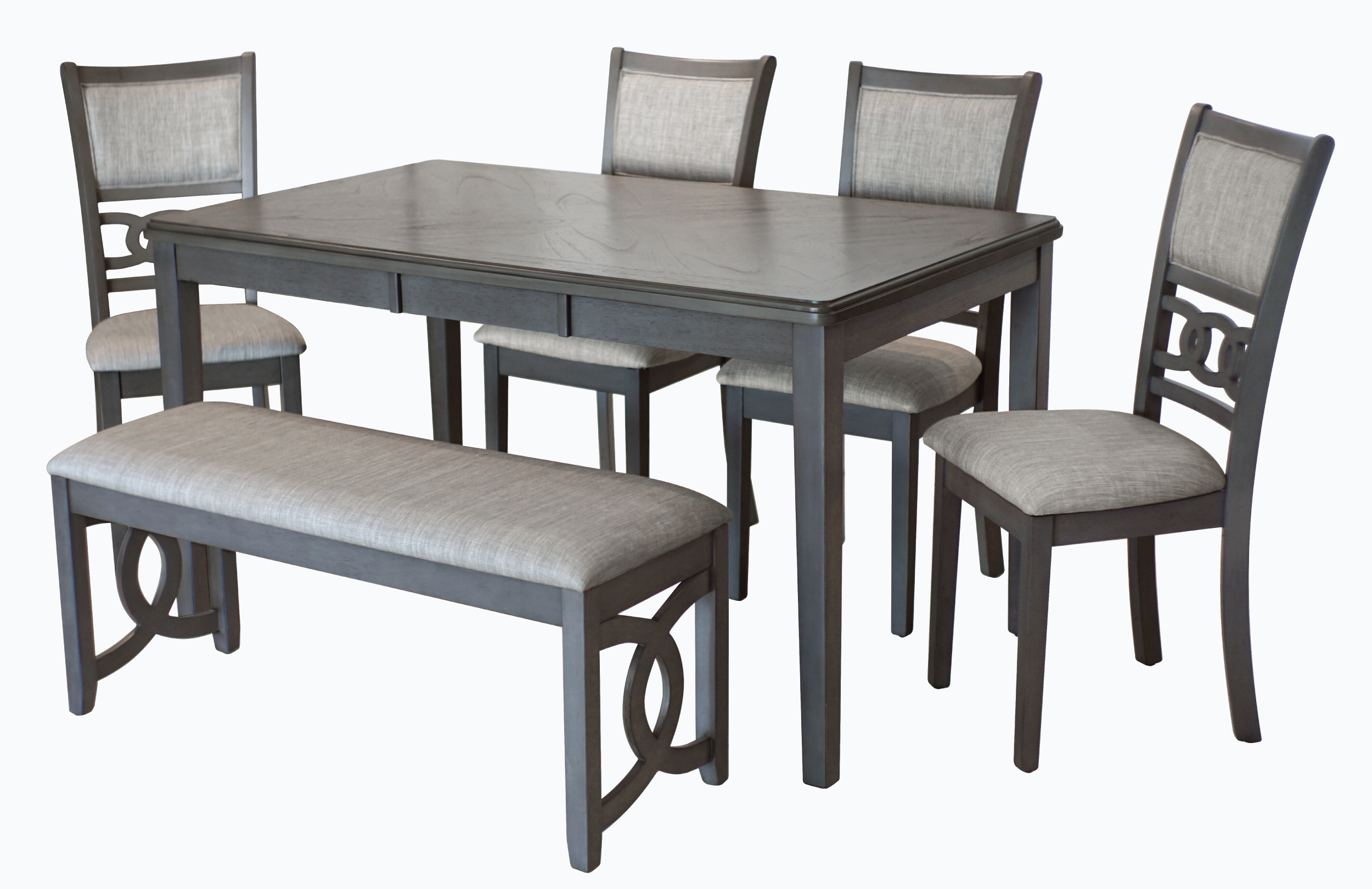This 5-piece set, available in grey and ebony, brings a modern touch to your dining space. It includes a stylish rectangular table, and four chairs. While the table is available as a set only, you have the flexibility to add more chairs or complete this set with its matching bench, for a for and added touch or simply to suit your space and style. The Gia rectangular is definitely the versatile choice for both family meals and entertaining guests.