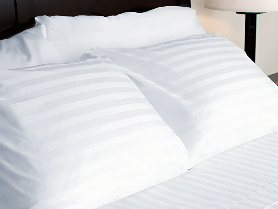 Hospitality quality sheets are constructed of 55% cotton and 45% polyester for ultimate softness and durability. Featuring an elegant tone-on-tone striping for a luxurious appearance at an affordable price.